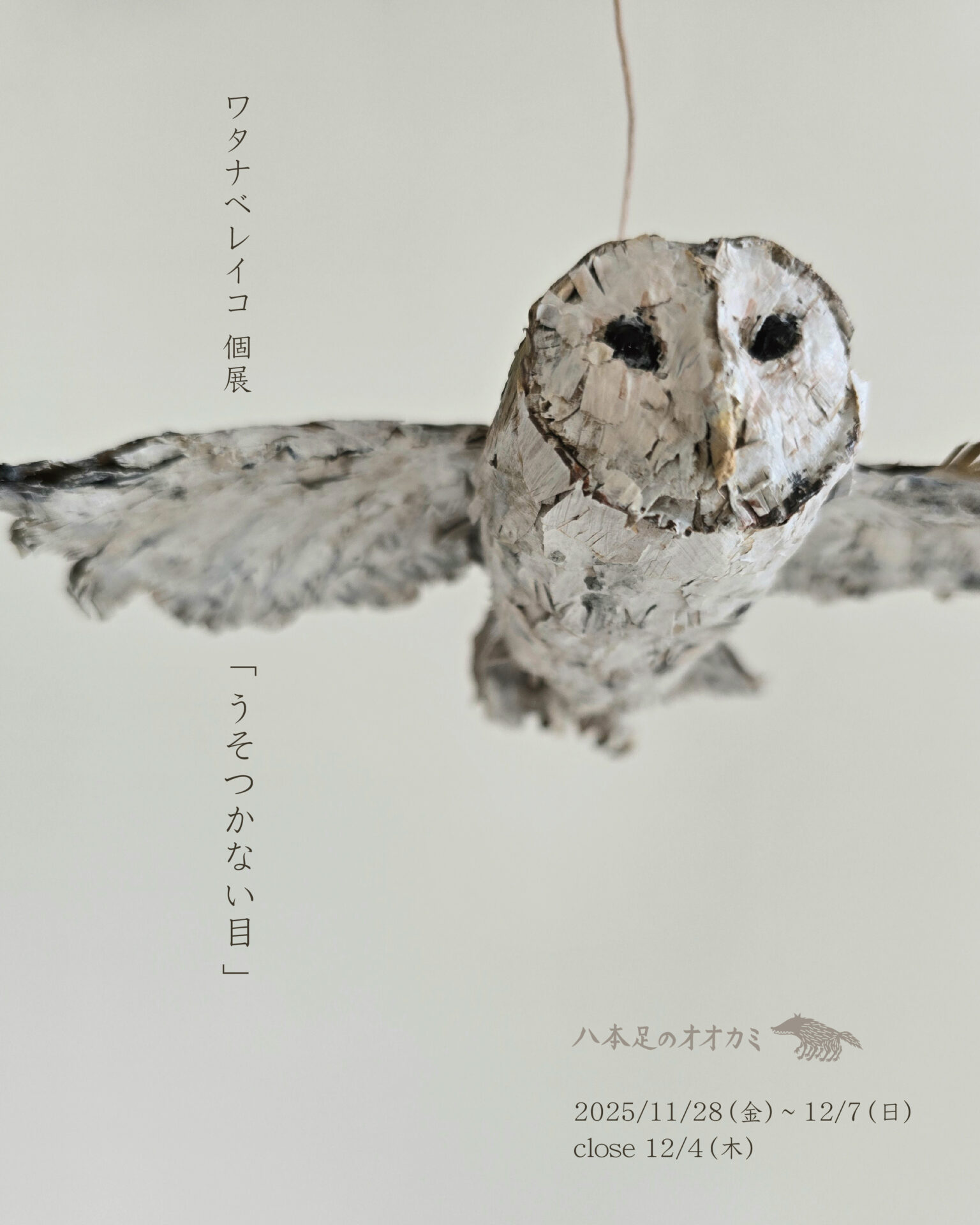 11/28(金)より立体作家・ワタナベレイコさんの個展「うそつかない目」が、当店galleryエリアで始まります。