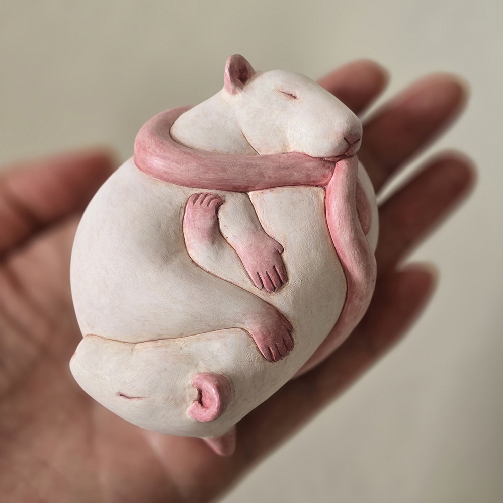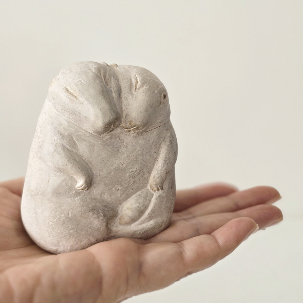身近な生物を混合したイメージをもとになにかのいきている/いた気配、存在感、力強い目の表情、素材の質感、触感、個人的で普遍的であること、日常に共に在る作品であること、を軸に制作しています。