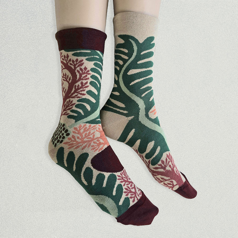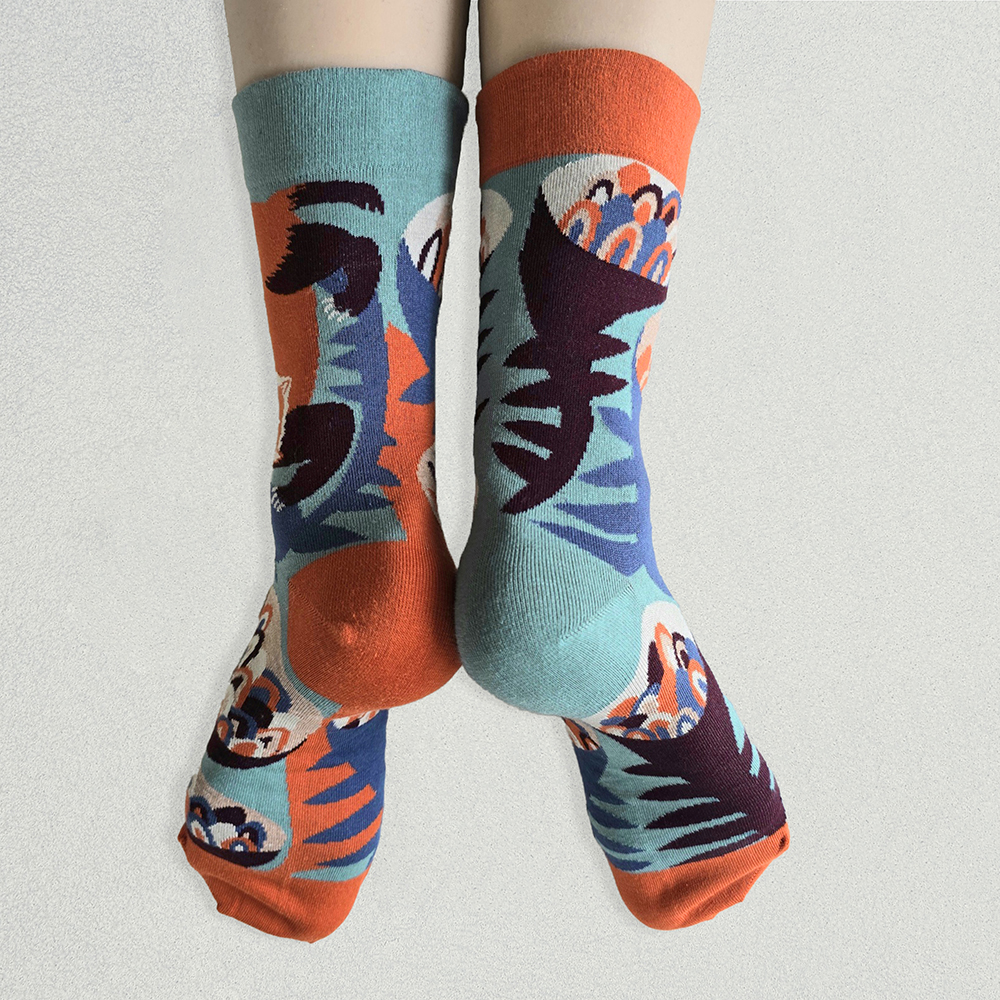それぞれ左右の柄が違い、ちぐはぐなのがオシャレで楽しい靴下です。
