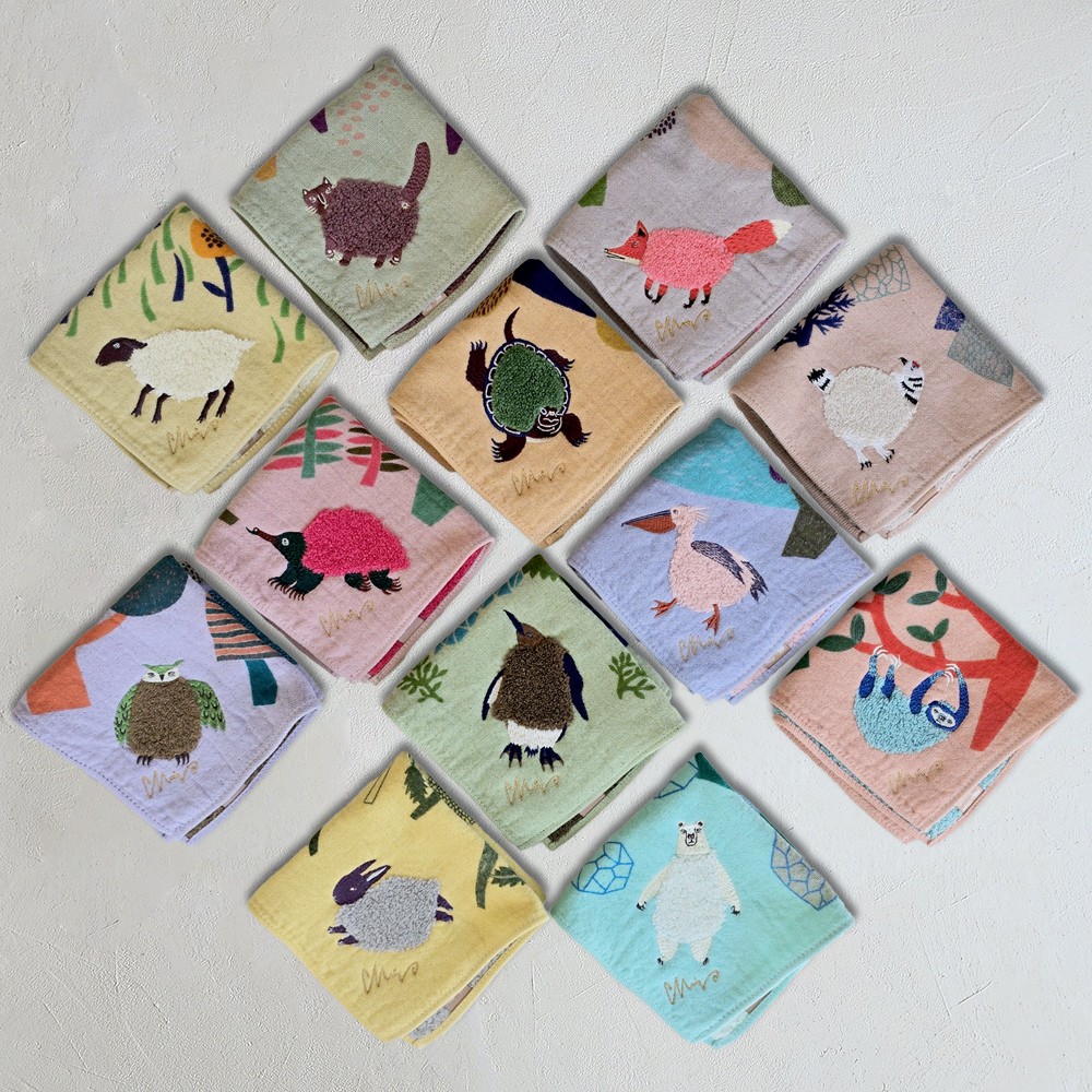 2026年3月18日(水)にmoritaMiWのモコモコドウブツハンカチ3柄が新発売!